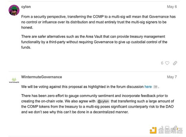 社區(qū)拒絕了這一提議,理由是:對未來的多簽活動缺乏保證;對大量金庫資金在無適當保障的情況下轉移的擔憂。