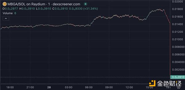 每一個低流動性池都是在過去 24 小時內(nèi)跑路的項目。以 MBGA 為例,在過去 24 小時內(nèi),Raydium 上發(fā)生了 46,000 筆交易,交易量達 1,080 萬美元,2,845 個獨立錢包進行買賣,并產(chǎn)生了超過 28,000 美元的費用。(請注意,類似規(guī)模得到廣泛認可的LP,MEW,僅生成了 11.2K 筆交易)
