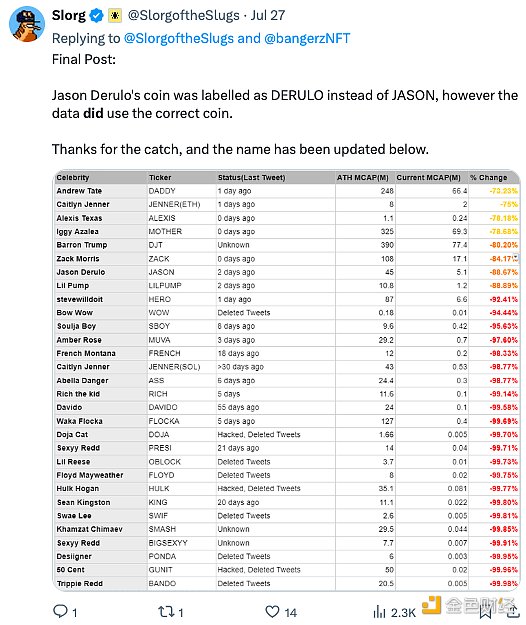 除了跑路和 MEV,散戶的前景仍然暗淡。名人們選擇 Solana 作為他們的首選公鏈,但結(jié)果并不樂觀: