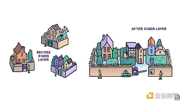 EigenLayer可以幫助任何Blockchain服務(wù)(主動驗證服務(wù)或AVS)引導(dǎo)Ethereum支持的安全性,借此來解決這個問題。該協(xié)議由專門提供計算和安全的運營商組成。用戶將ETH或流動性質(zhì)押分配給這些運營商,然后這些運營商驗證一個或多個AVS。