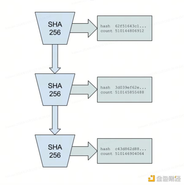 在 Solana 的 POH 序列中,通過應(yīng)用 sha 256 算法就能確保整個(gè)序列的完整性,也就確定了其中交易的完整性。舉個(gè)例子,如果我們將交易打包成一個(gè)區(qū)塊,生成對(duì)應(yīng)的 sha 256 hash 值,那么這個(gè)區(qū)塊內(nèi)的交易就被確定,任何變動(dòng)都會(huì)導(dǎo)致 hash 值的更改,之后這個(gè)區(qū)塊 hash 作為將作為下一個(gè) sha 256 函數(shù)的 X 的一部分,再添加下一個(gè)區(qū)塊的 hash,那么上一個(gè)區(qū)塊以及下一個(gè)區(qū)塊就都被確定下來,任何變動(dòng)都會(huì)導(dǎo)致新 Y 的不同。