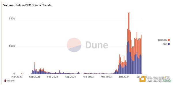 當(dāng)前在整個(gè) DEX 方面競(jìng)爭(zhēng)激烈,其龍頭也經(jīng)歷了多次遷移,從 Raydium,Orca 到現(xiàn)在 Jupiter 為主導(dǎo)地位。