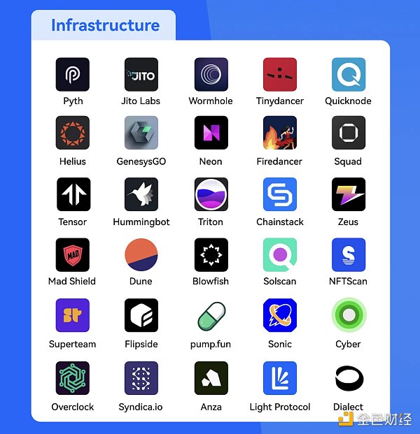 在基礎(chǔ)設(shè)施的構(gòu)建上,主要的龍頭是預(yù)言機(jī) Pyth 以及跨鏈橋 Wormhole,也包括一些針對(duì)性的解決方案大眾可能了解較少,比如: