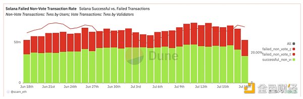 總之,宕機(jī)主要是無法出塊的問題,有可能是因?yàn)?Leader 機(jī)制帶來的單Node故障,在區(qū)塊組建處產(chǎn)生問題,也有可能是共識(shí)層無法對(duì)區(qū)塊達(dá)成共識(shí),導(dǎo)致無法出塊的問題。整體而言,這與 Solana 的本身架構(gòu)以及軟件的測(cè)試流程有緊密相關(guān)。交易失敗