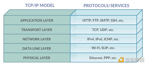 網(wǎng)絡(luò)協(xié)議層級(jí)—— 5 層結(jié)構(gòu),圖源:Research Gate